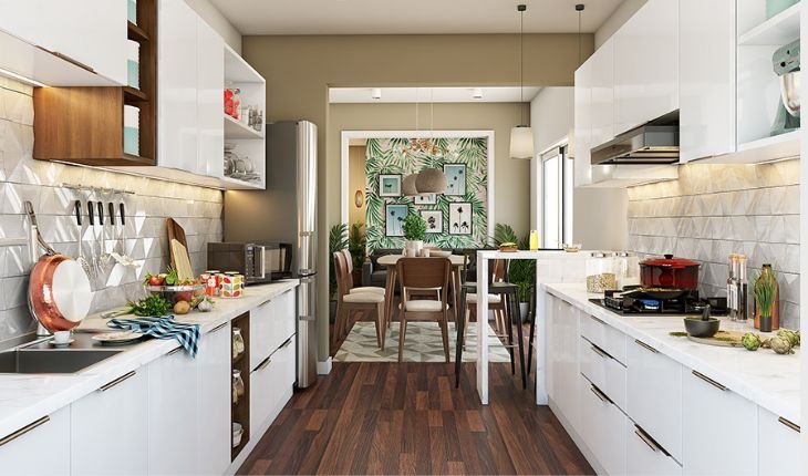 The Parallel Modular Kitchen is trending in Indian kitchens. Click here for parallel -shaped kitchen design ideas straight from Livspace homes.The parallel shaped modern modular open kitchen design is made for those who want their living rooms and kitchens to not be separate places. The most common kitchen layouts in India are: parallel shaped, U-shaped, Straight.This parallel-shaped modular kitchen, designed in a luxurious navy and pops of lime green, is a treat to the eyes.